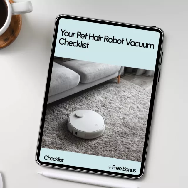 Created specifically for pet households, this downloadable checklist helps you evaluate your home, your pets, and the features that truly matter. Whether you share your space with one shedding cat or multiple fluffy dogs, this guide helps you avoid expensive mistakes and invest in a robot vacuum that keeps floors clean with minimal effort.